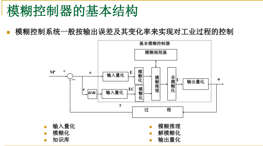 - 知识库调节器:根据 \(p(kT)\) 和上一时刻的控制局势,修改模糊控制器规则库中相应规则的参数。