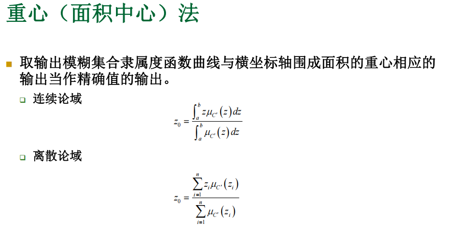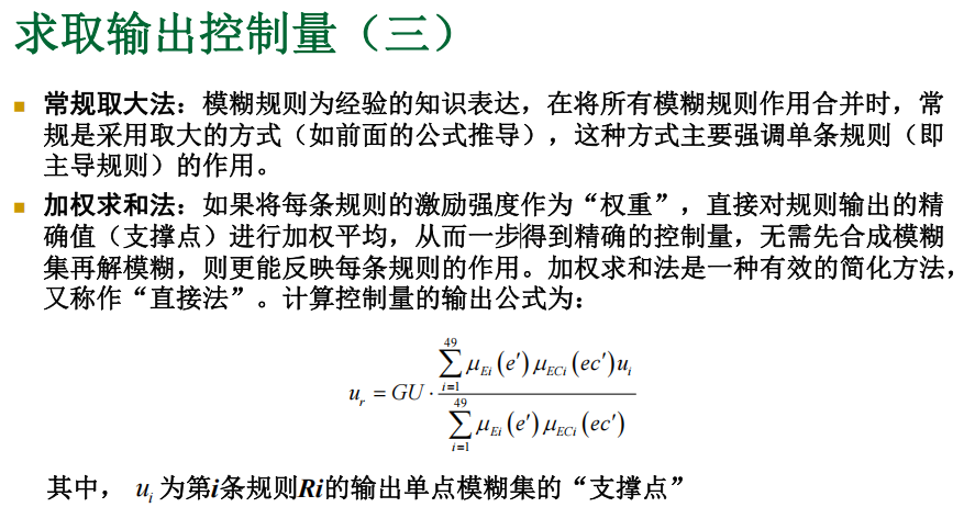 - 模糊系统输出(采用乘积推理、单点模糊化、中心平均解模糊