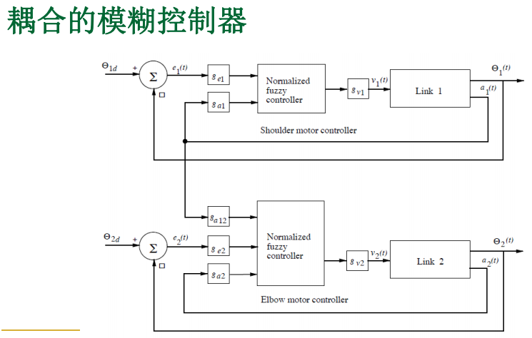 - 模糊控制器:输入为关节角度误差和连杆末端加速度,输出为关节电机电压。
