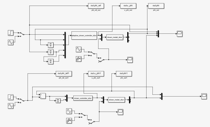 采用经典的PID控制器,控制律为: $ u_phi = K_p e + K_i int_0^t e(tau) dtau + K_d frac{de}{dt}$\(其中\) e = phi_{text{ref}} - phi $。参数通过Matlab自带的PID参数调节功能自整定,并作为性能对比基准。