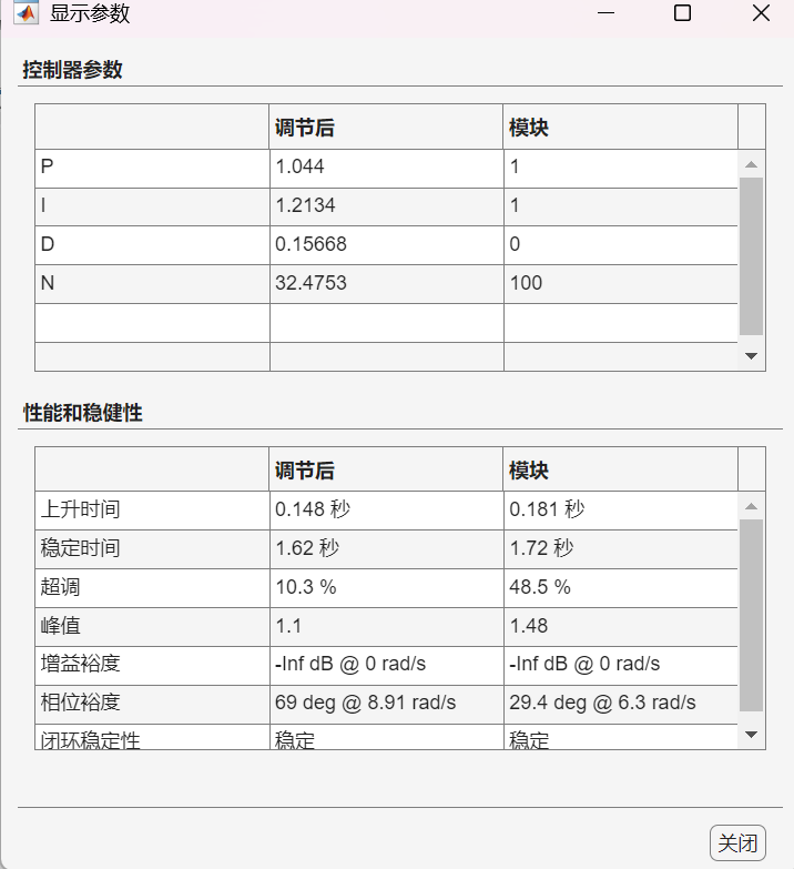 由 Matlab 自带的 PID 参数调节功能自整定得:
