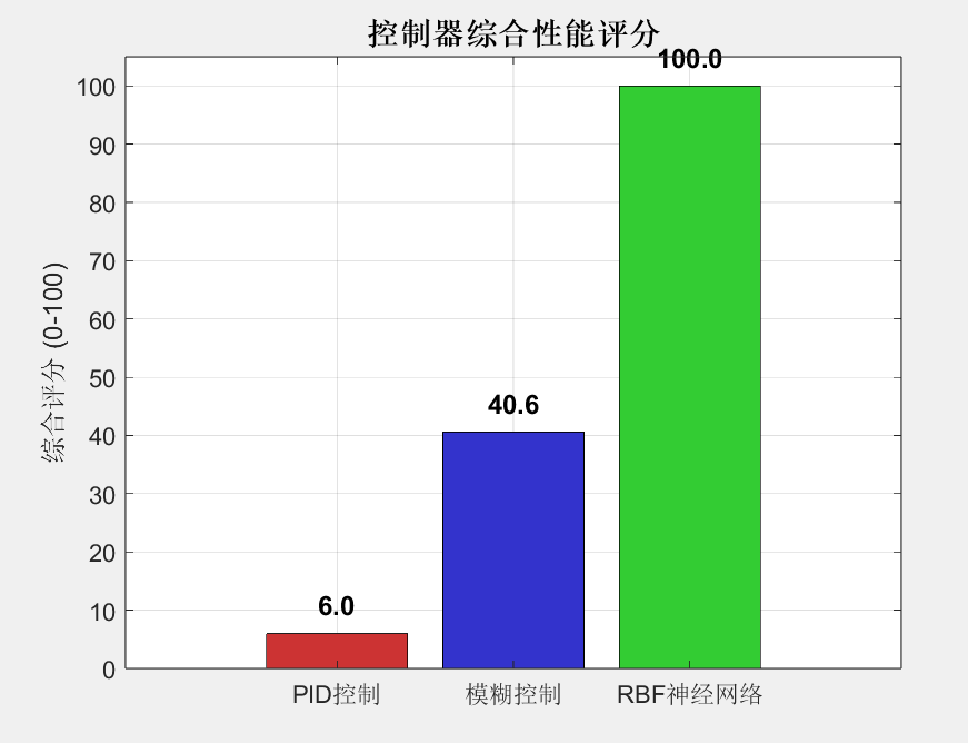 根据系统特性,选择以下三种控制方案进行设计与对比: 1. PID 控制:作为基准控制器,结构简单,但参数固定,对非线性系统适应性差。 2. 模糊控制:包括普通模糊控制和自适应模糊控制。基于专家经验,无需精确数学模型,适合非线性系统。 3. RBF 神经网络自适应控制:具备学习能力,可自适应调整参数,适合处理不确定性和扰动。