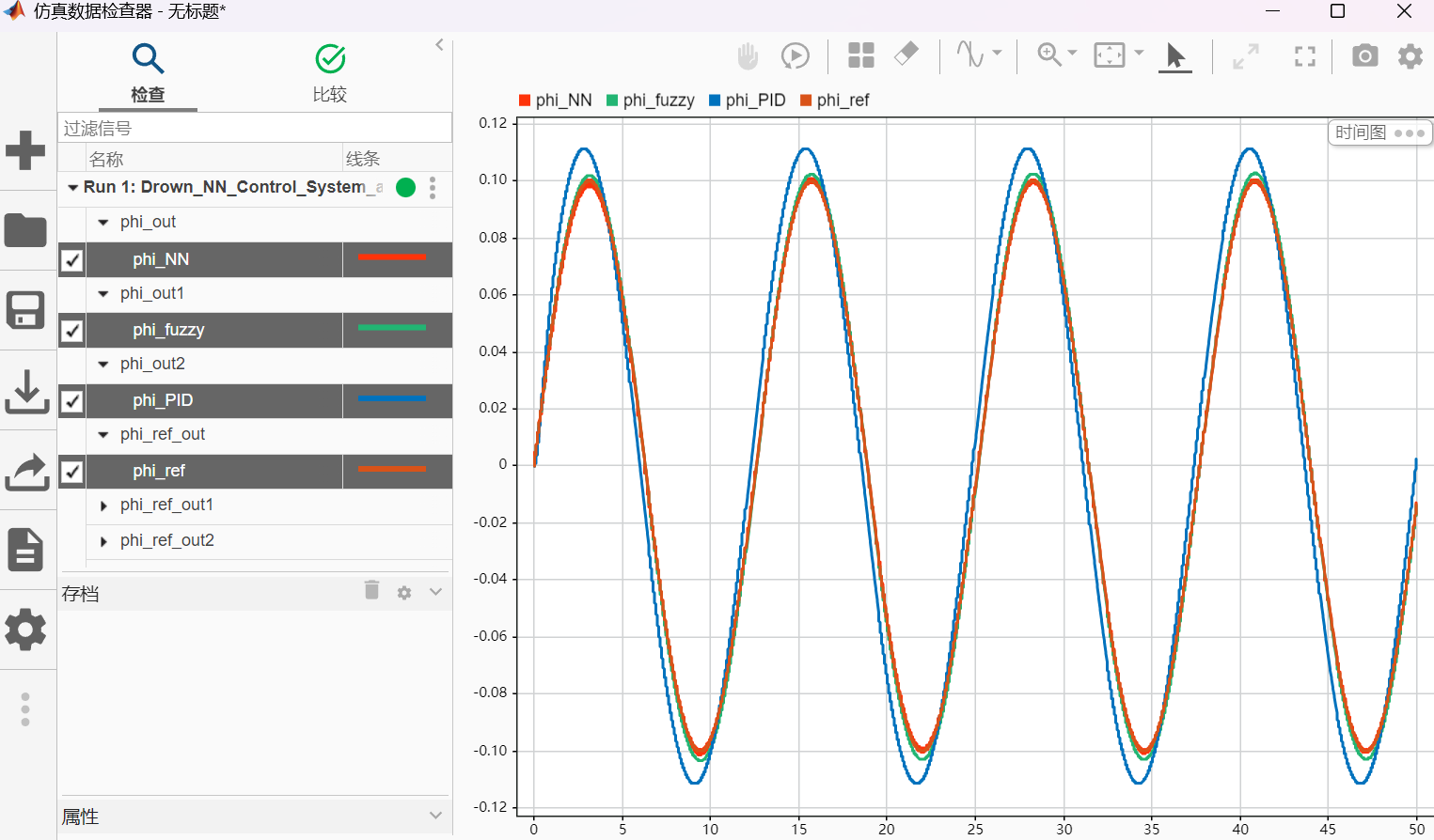- 阶跃信号:\(\phi_{\text{ref}} = 0.5 \, \text{rad} \cdot 1(t)\),用于测试动态响应。