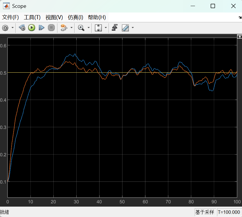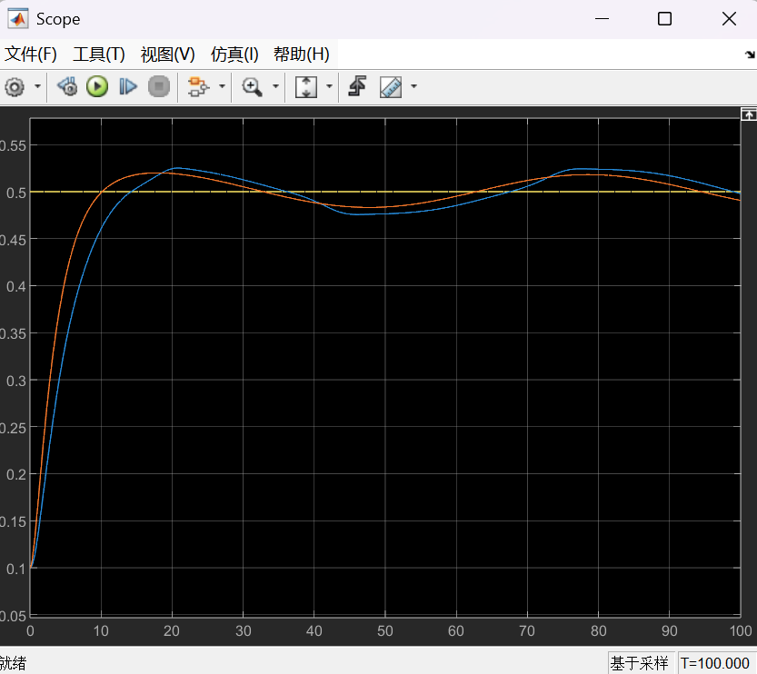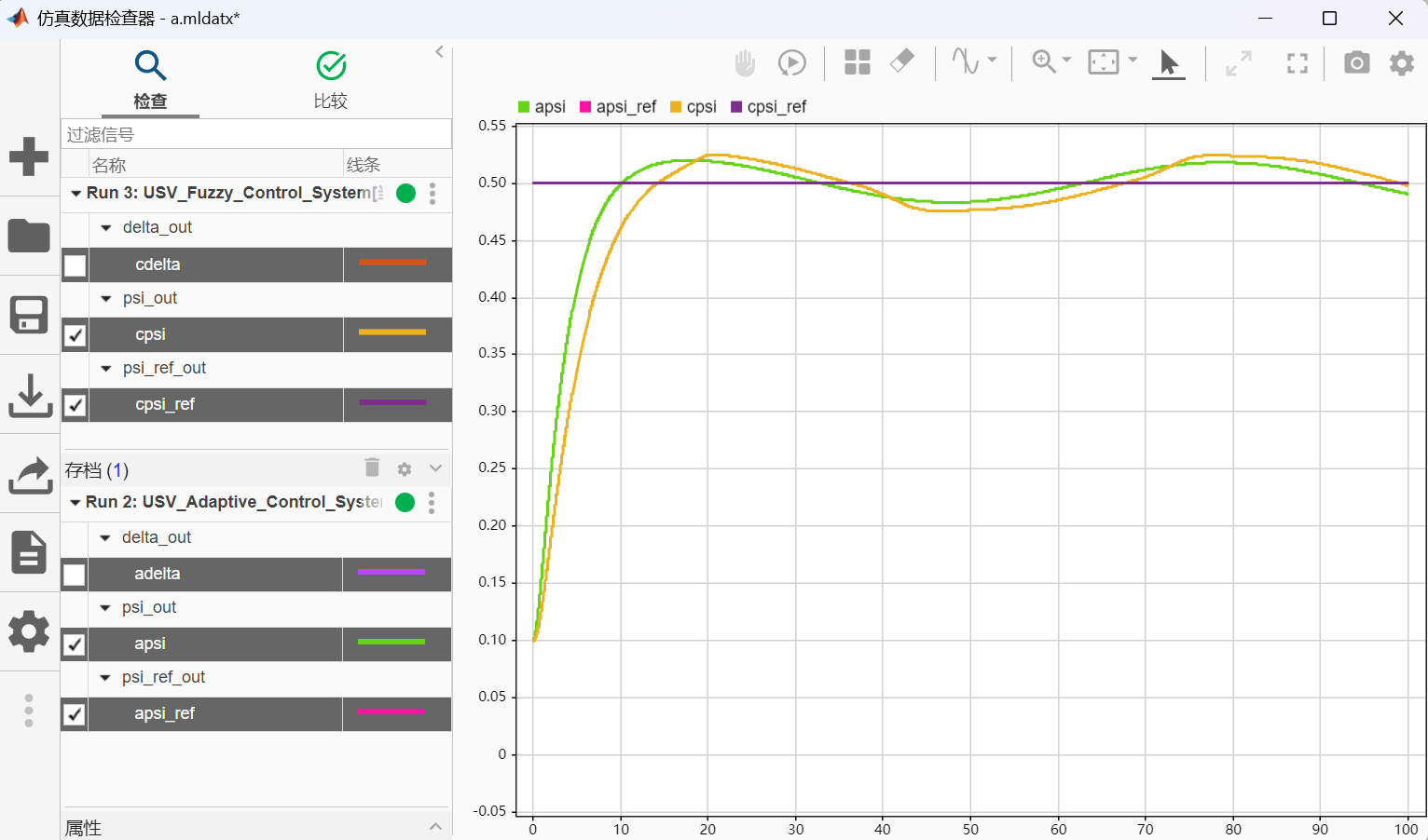 - 阶跃响应:\(\psi_{ref}(t) = 0.5 \cdot 1(t)\)